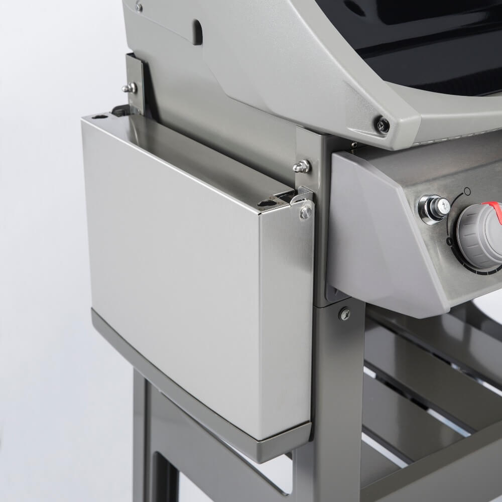 Левый откидной боковой столик, в сложенном виде позволят установить гриль даже в ограниченном пространстве.